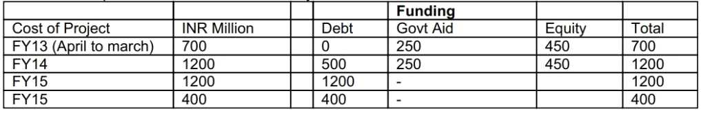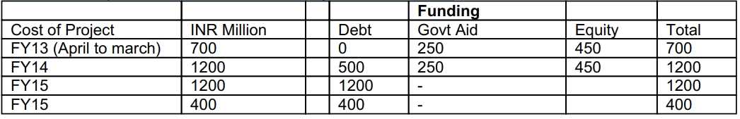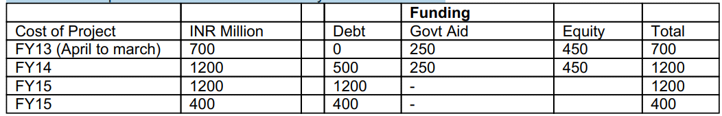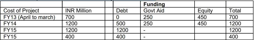 estimated cost of project is about INR3, 500 Million to be spent over a period of 4 year(s) the project