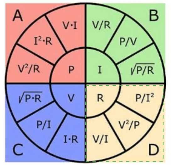 Which section of the Ohm's Law chart should be used to calculate values expressed in Ohms? Select