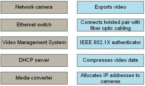 DRAG DROP Match each function to the correct video surveillance system component. Drag each gray box from the left column to the matching blue box in the right column.