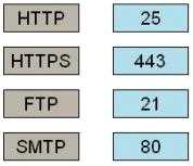 DRAG DROP Match the protocol to its default port number. Drag each gray box from the left column to the matching blue box in the right column.