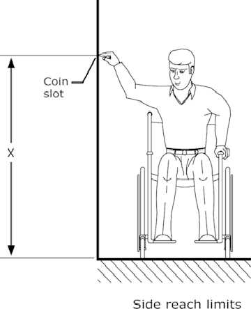 Disability Act) requirement for side reach using a wheelchair. What will be the maximum reachable