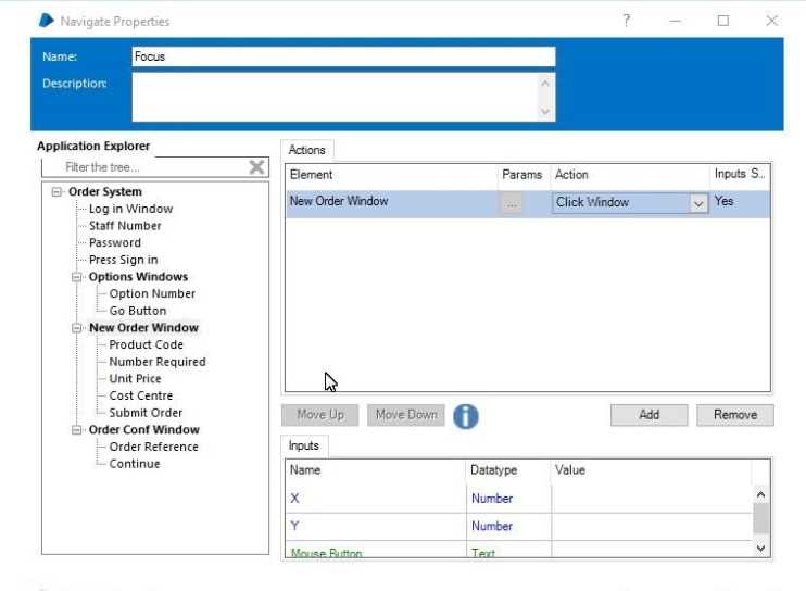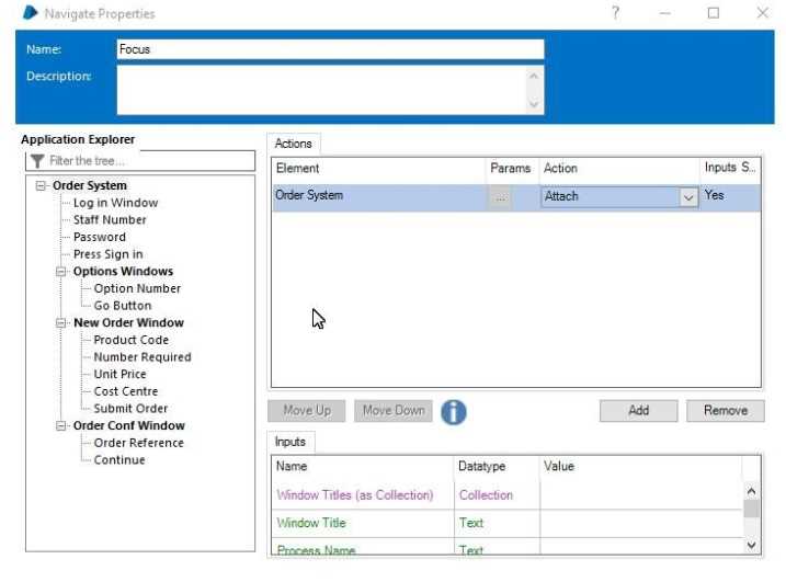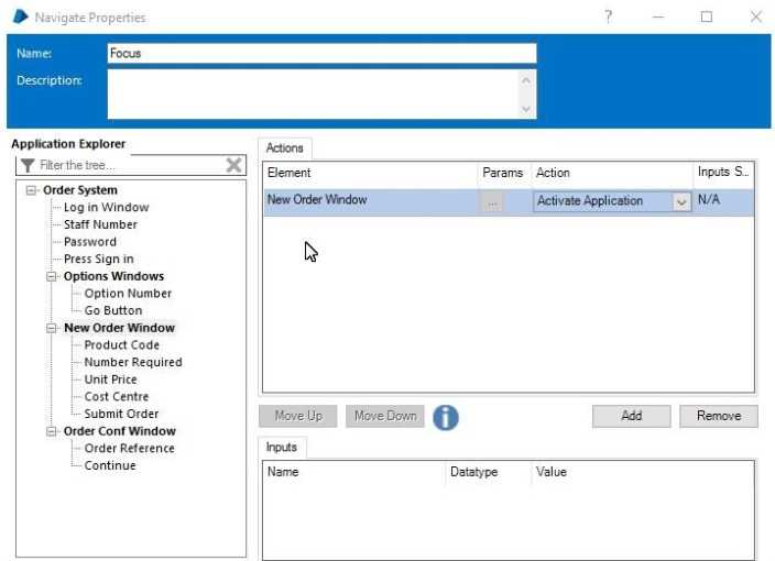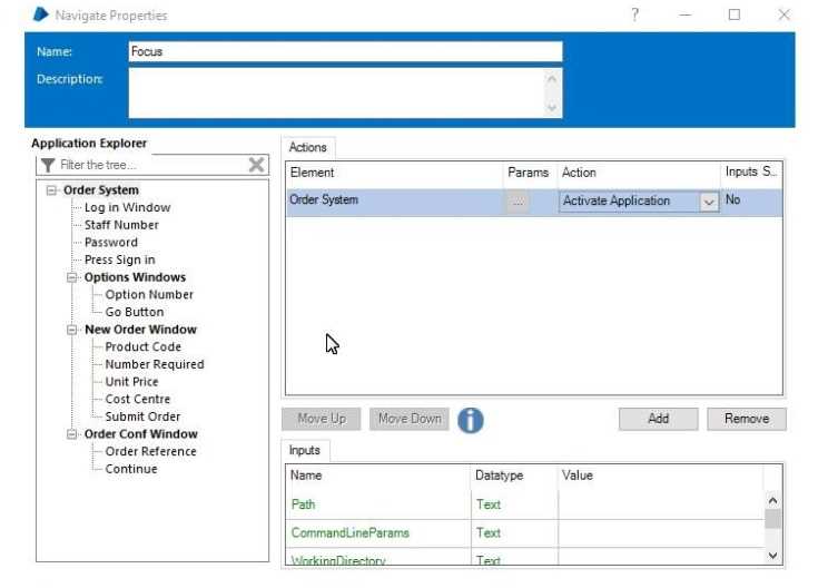 The Order System application has been successfully launched and Blue Prism has navigated the