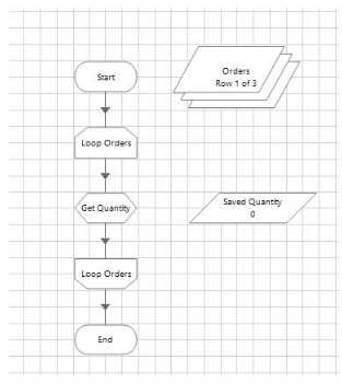 The Saved Quantity data item will contain the sum of all the Quantity values in the Orders collection