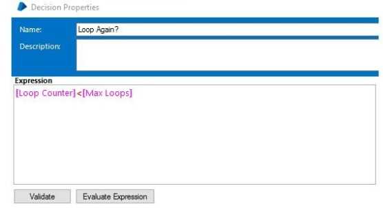 To enable this to work correctly, what is the correct expressions for the Try Again' decision stage?