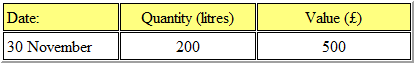 (a) 500 litres of chemical XTC was purchased for £1300.
