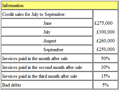 The amount budgeted to be received in September from credit sales is, to the nearest £000: