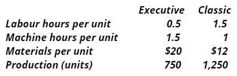 D3 makes 2 types of toilets - the Executive (Ex) and the Classic (CI). Direct labour costs $6 per hr and