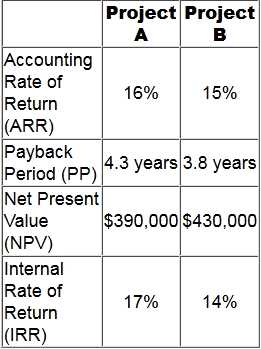 A company is considering two mutually exclusive projects, an analysis of which is given below: