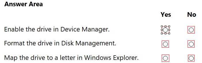 For each action select Yes if it might solve the problem and No if it will not solve the problem.