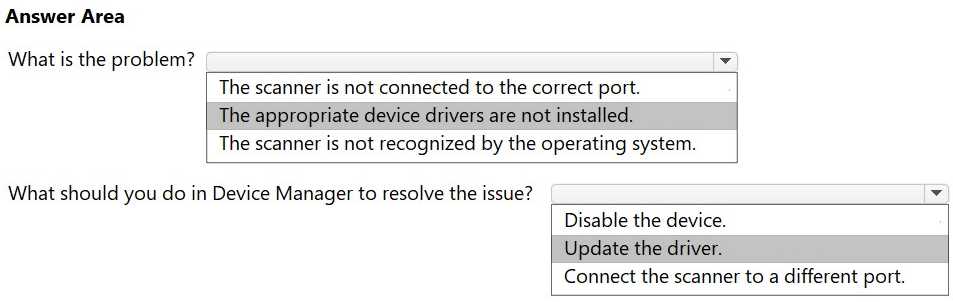 A customer cannot scan documents and pictures to a Windows laptop. When you open Device