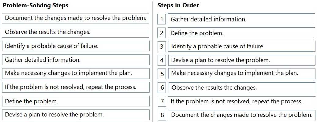 Move all the problem-solving steps to the answer area and place them in the correct order.
