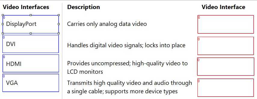 To answer, move the appropriate components from the list on the left to the correct locations on the