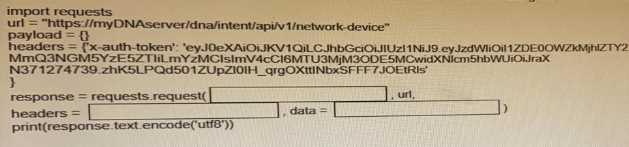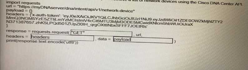 Fill in the blanks to complete the python script to retrieve a list of network devices using the Cisco