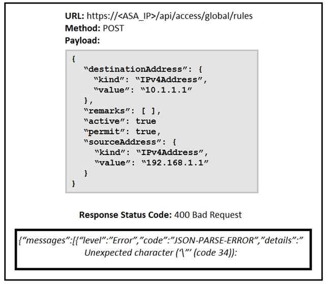 problem with the formatting of the JSON payload. Specifically, there are likely incorrect characters or