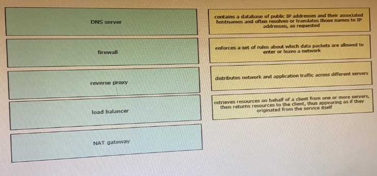Drag and drop the network component names from the left onto the correct descriptions on the