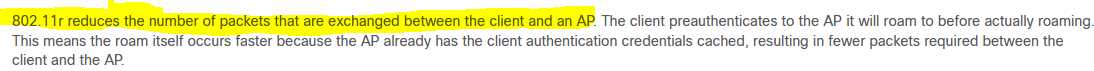 applications by enabling faster roaming between APs. This protocol reduces the number of packets