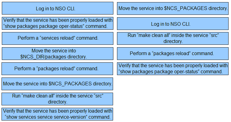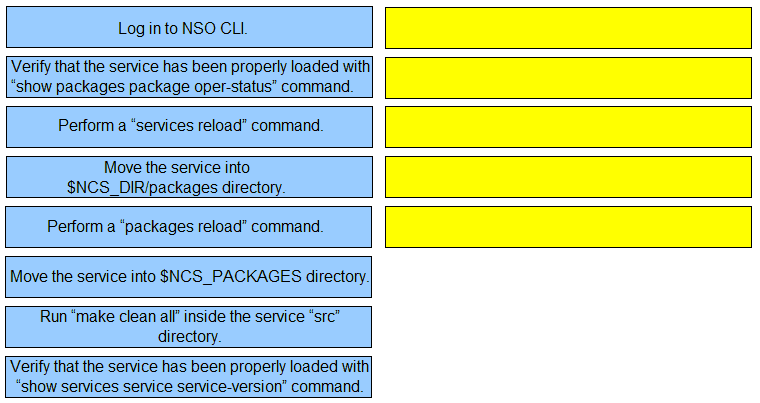 Drag and drop the steps from the left into the correct order on the right to deploy an already created