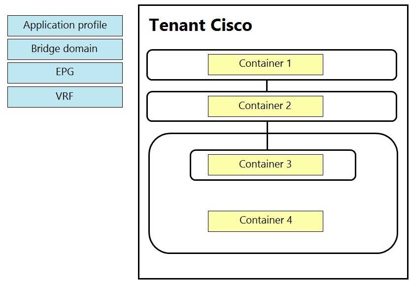 An engineer is configuring a VRF for a tenant named Cisco. Drag and drop the child objects on the left