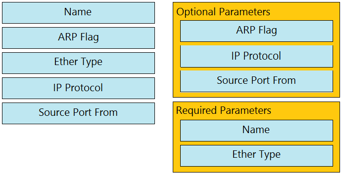 Drag and drop the Cisco ACI filter entry options from the left onto the correct categories on the right