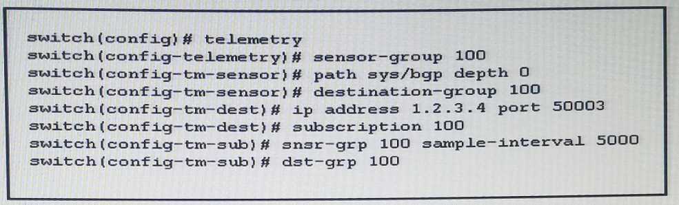 Refer to the exhibit, Where and how often does the subscription stream data for Ethernet port 1/1?