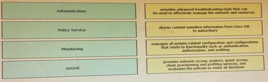 Policy Service = provides network access, posture, guest access, client provisioning, and profiling