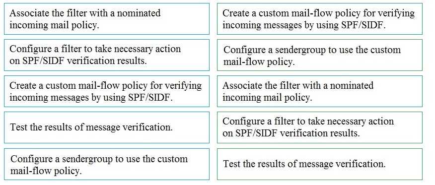 Drag and drop the steps to configure Cisco ESA to use SPF/SIDF verification from the left into the