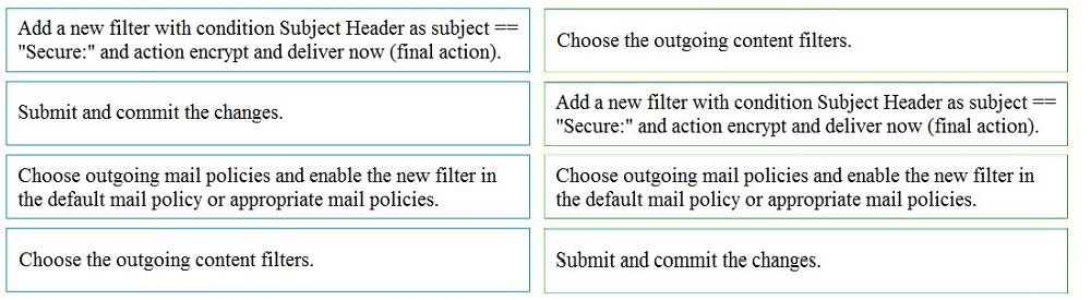 Drag and drop the steps from the left for creating an outgoing content filter to encrypt emails that