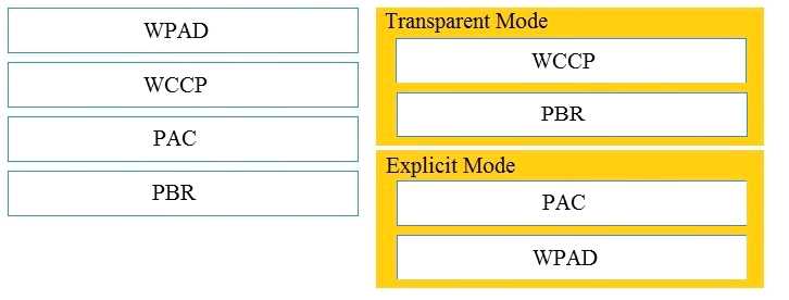 Drag and drop the Cisco WSA methods from the left onto the correct deployment modes on the