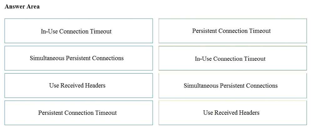 Drag and drop the properties from the left onto the correct advanced web proxy setting descriptions