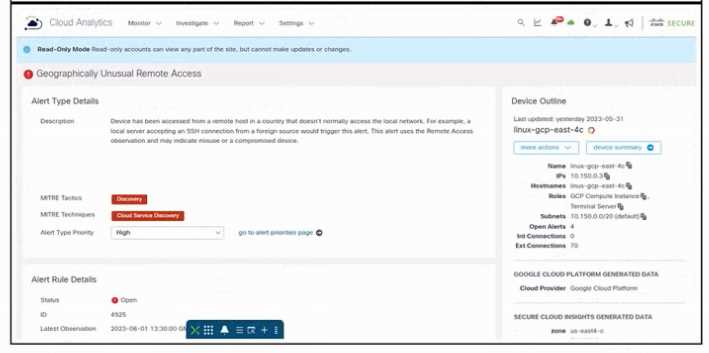 Refer to the exhibit. An engineer must analyze the Cisco Secure Cloud Analytics report. What is