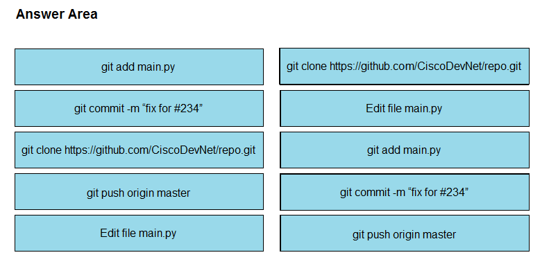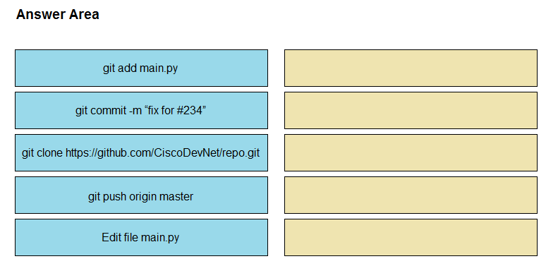 DRAG DROP Drag and drop the git commands/steps from the left into the correct order on the right to make changes and submit code to a remote repository.