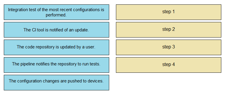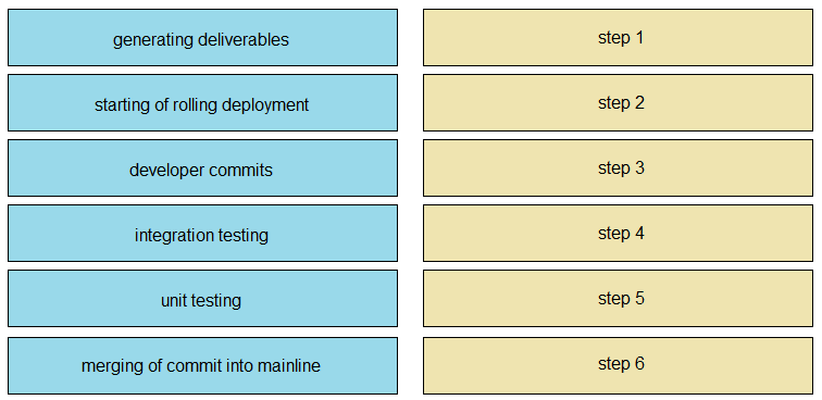 Drag and drop the operations from the left into the correct order on the right when using CI/CD,