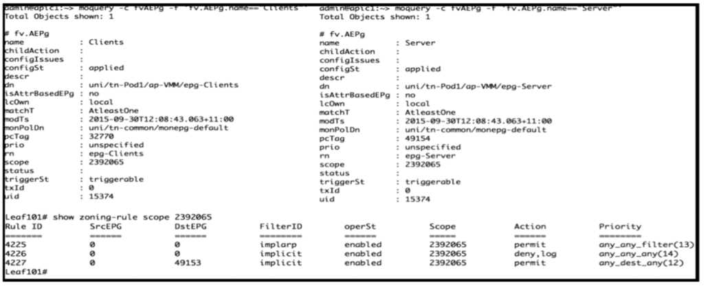 A virtual machine in the EPG "Clients" is unable to communicate via ICMP with a virtual machine in