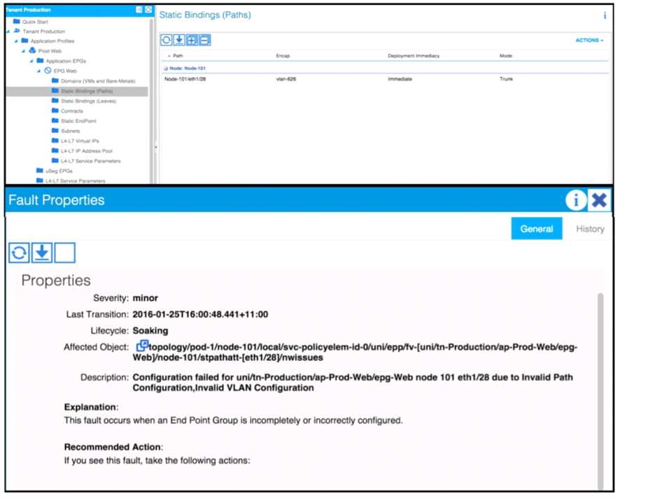created EPG had the fault shown in the exhibit. Which option is the likely explanation of this fault?