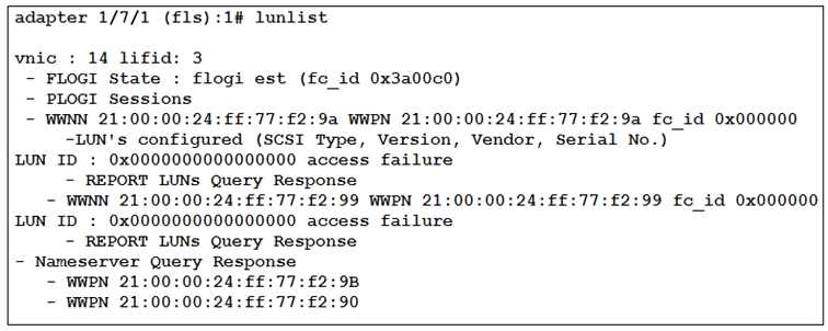 This output is observed when troubleshooting a blade that is unable to boot from SAN.Which action