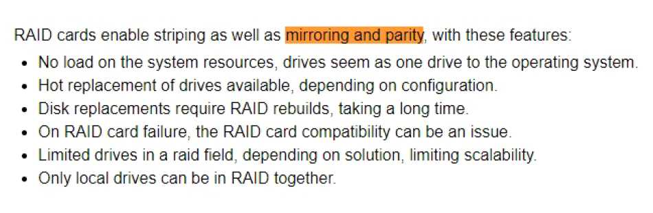 Which two features enable RAID cards striping as well as mirroring and parity? (Choose two.)