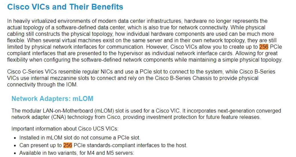 How many PCIe standards-compliant interfaces do Cisco VICs support?