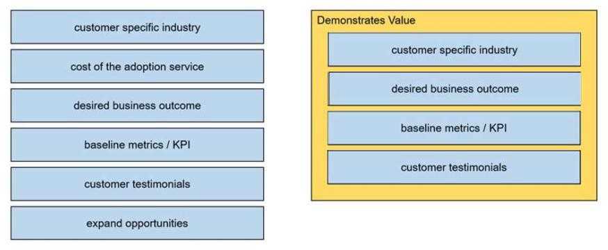 DRAG DROP An external customer case study is being created. Drag and drop the contents which show value from the left onto the right. Not all content choices are used.
