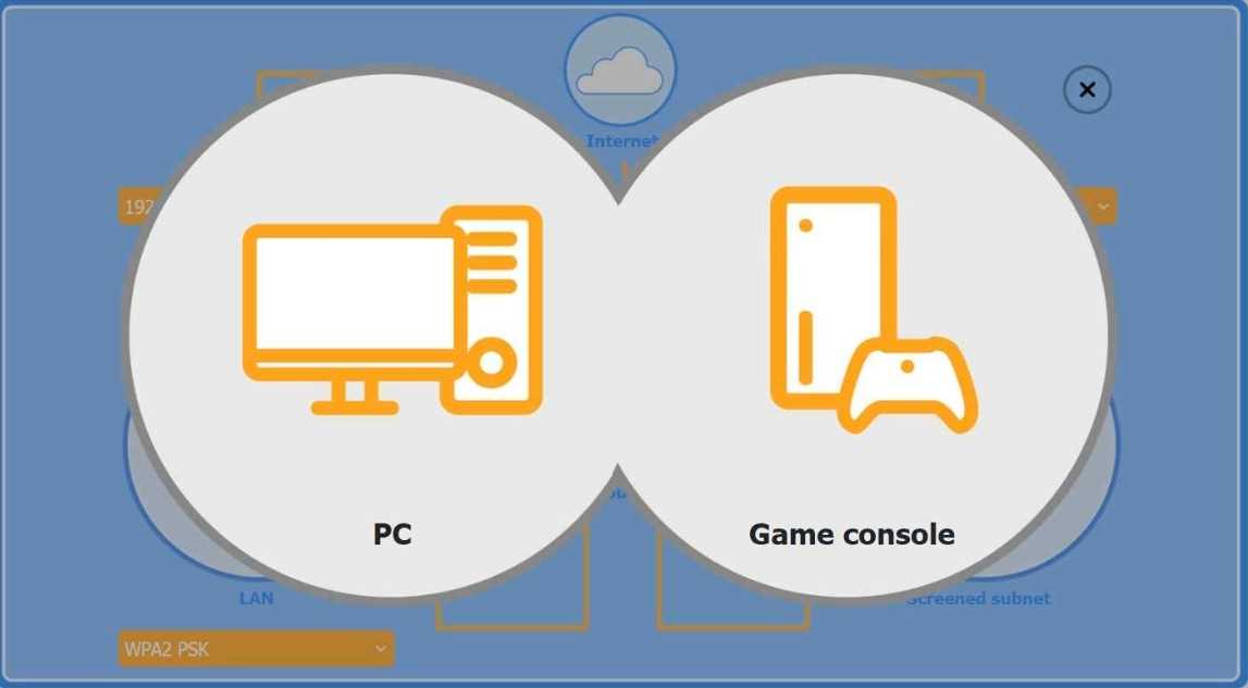 The Game Console is placed on the Wireless AP LAN, using WPA2 PSK for a secure wireless
