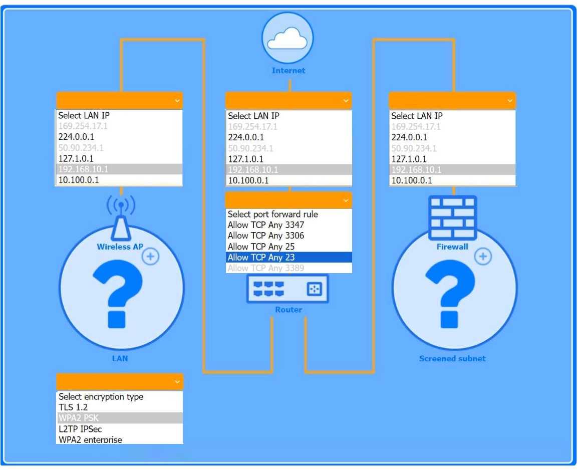Use the drop-down menus to complete the network configuration for the customer. Each option may
