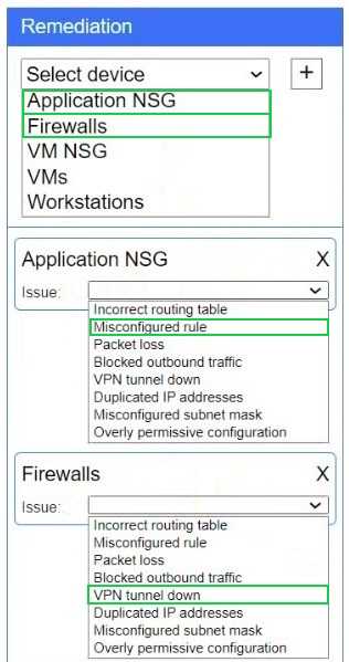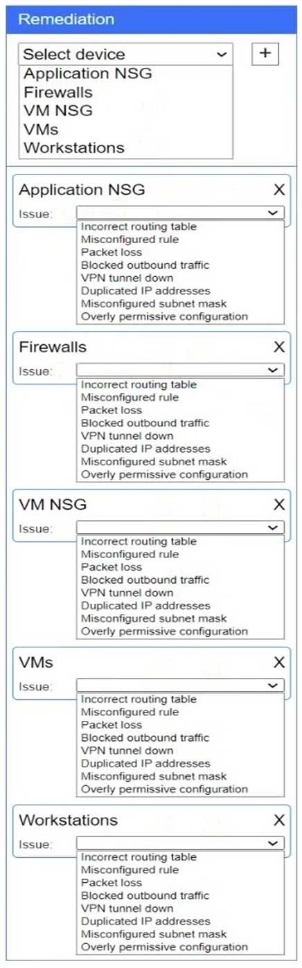 Select the appropriate device(s) requiring remediation and identify the associated issue(s).