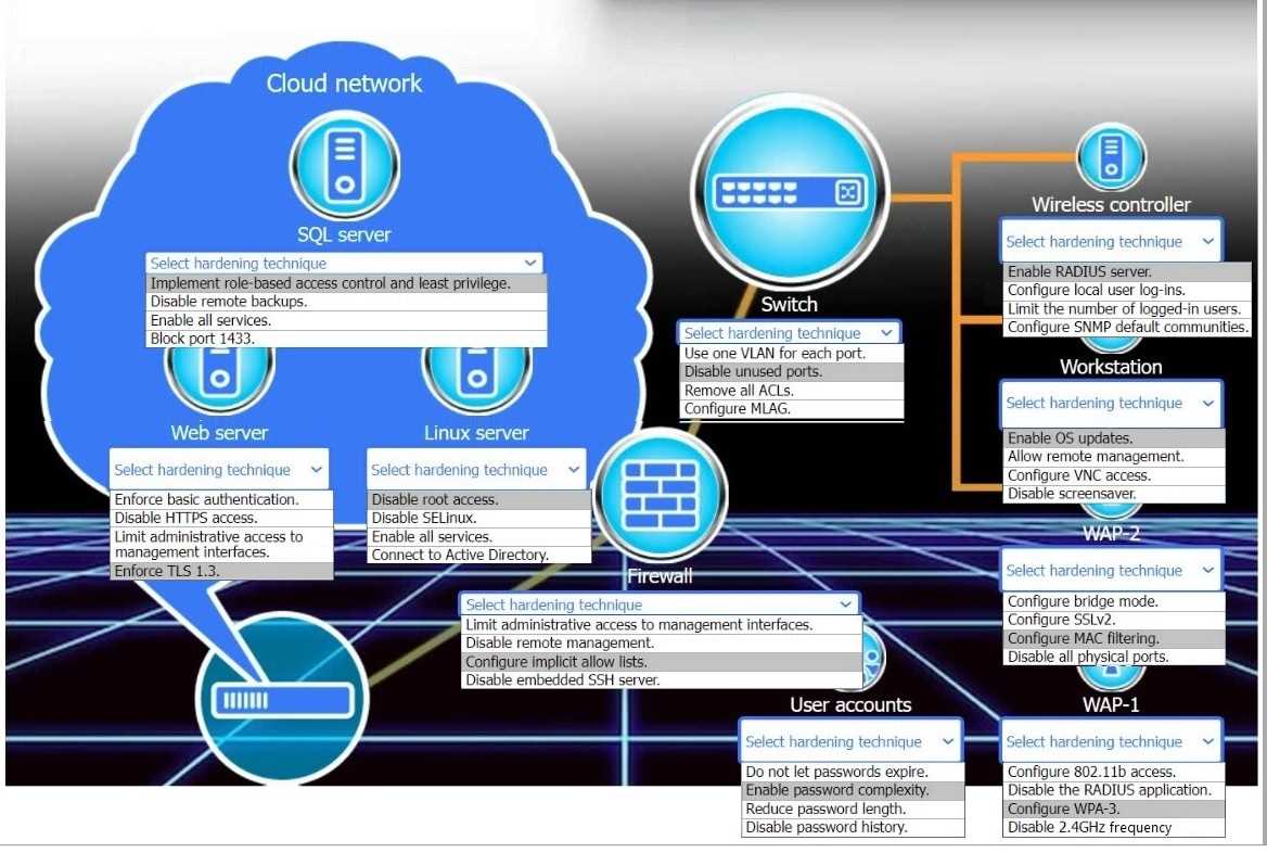 Use the drop-down menus to define the appliance-hardening techniques that provide the most