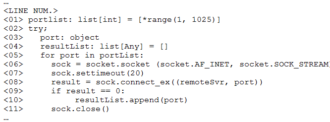 A penetration tester ran a simple Python-based scanner. The following is a snippet of the code: