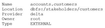 the accounts.customers table is an EXTERNAL table, which means that it is stored outside the default