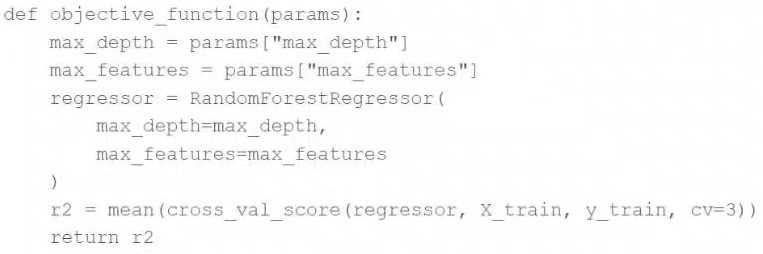 function, so to align with fmin's goal, you should return the negative of the R2 score (-r2). This way,