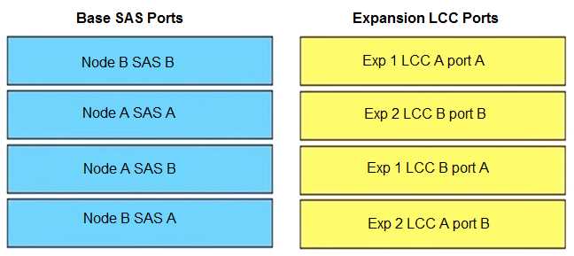 When connecting a PowerStore base enclosure to 2 expansion enclosures, match the base SAS ports