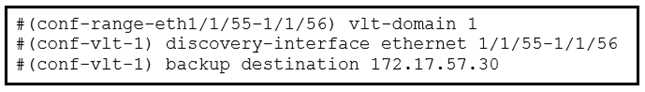 #(conf-vlt-1) discovery-interface ethernet 1/1/55-1/1/56 #(conf-vlt-1) backup destination