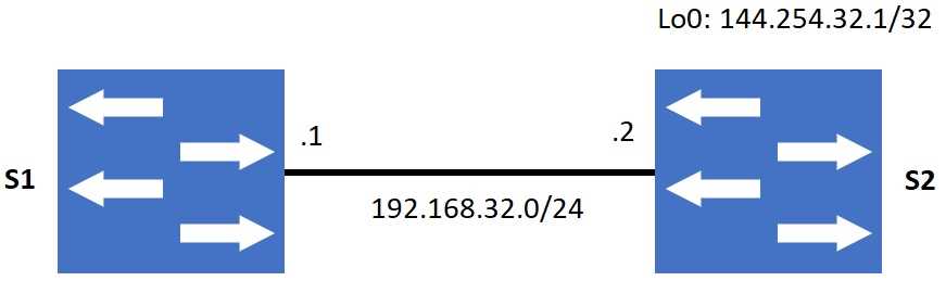 S1(config-router)# ip route 192.168.32.2 144.254.32.1/32
