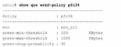 The output of the command show qos wred-policy pfc34 shows the ECN (Explicit Congestion