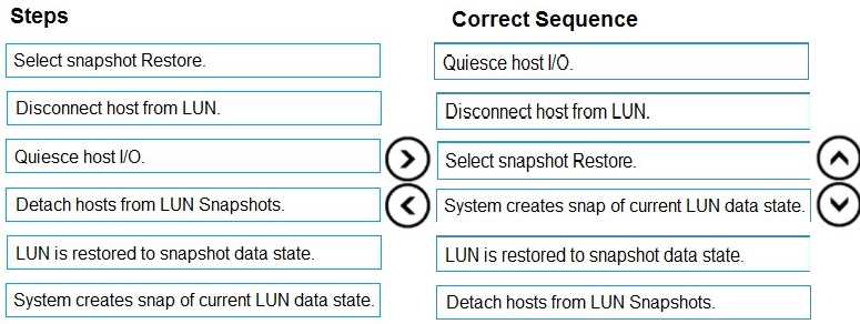 A storage engineer was asked to restore a LUN snapshot using a previous copy.